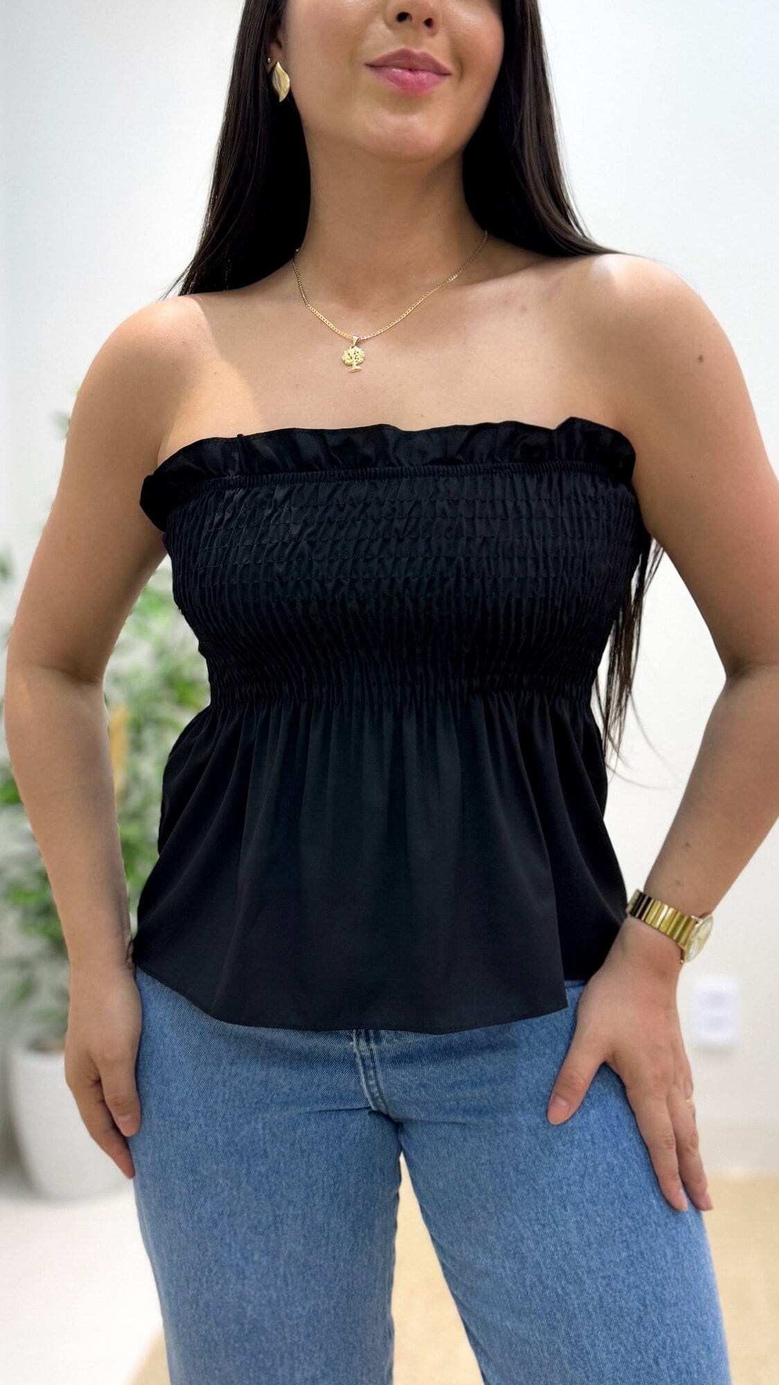 blusasinha toda franzida com elástico, trazendo conforto e praticidade, é a escolha perfeita para ocasiões especiais.
