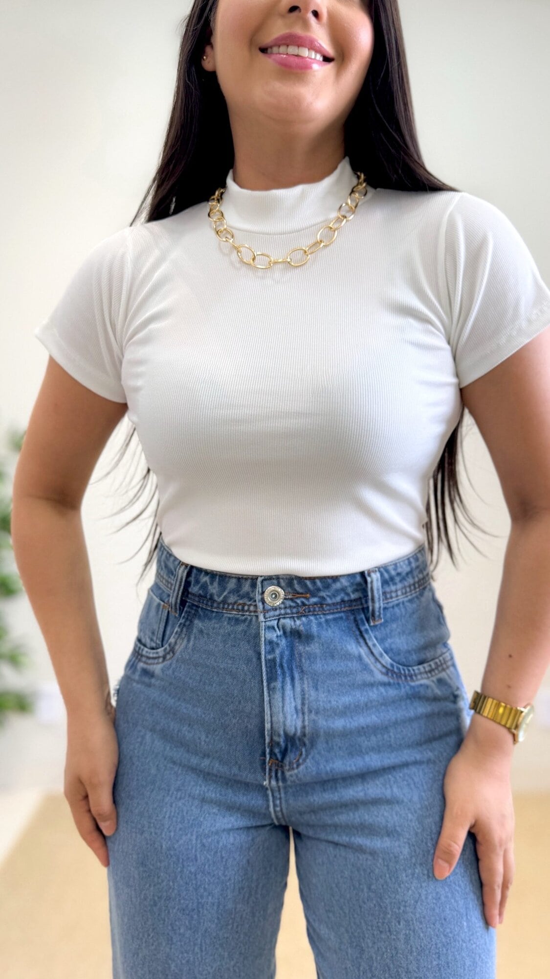 Blusinha básica que não pode faltar no guarda-roupa feminino, práticas e muito confortáveis. Modelo de gola alta.