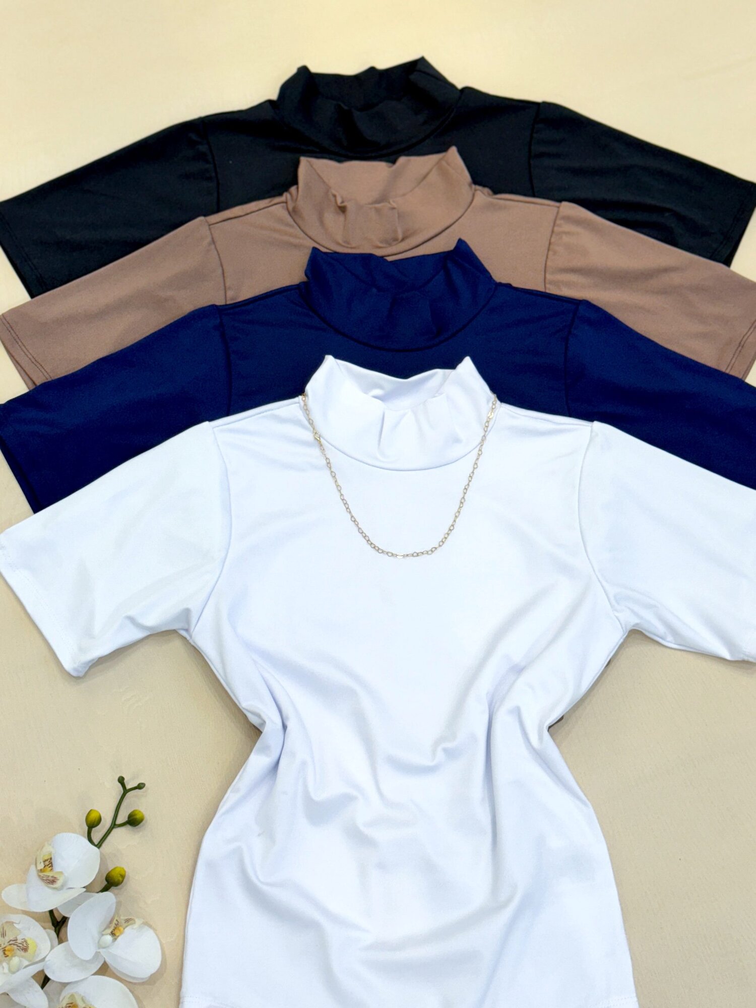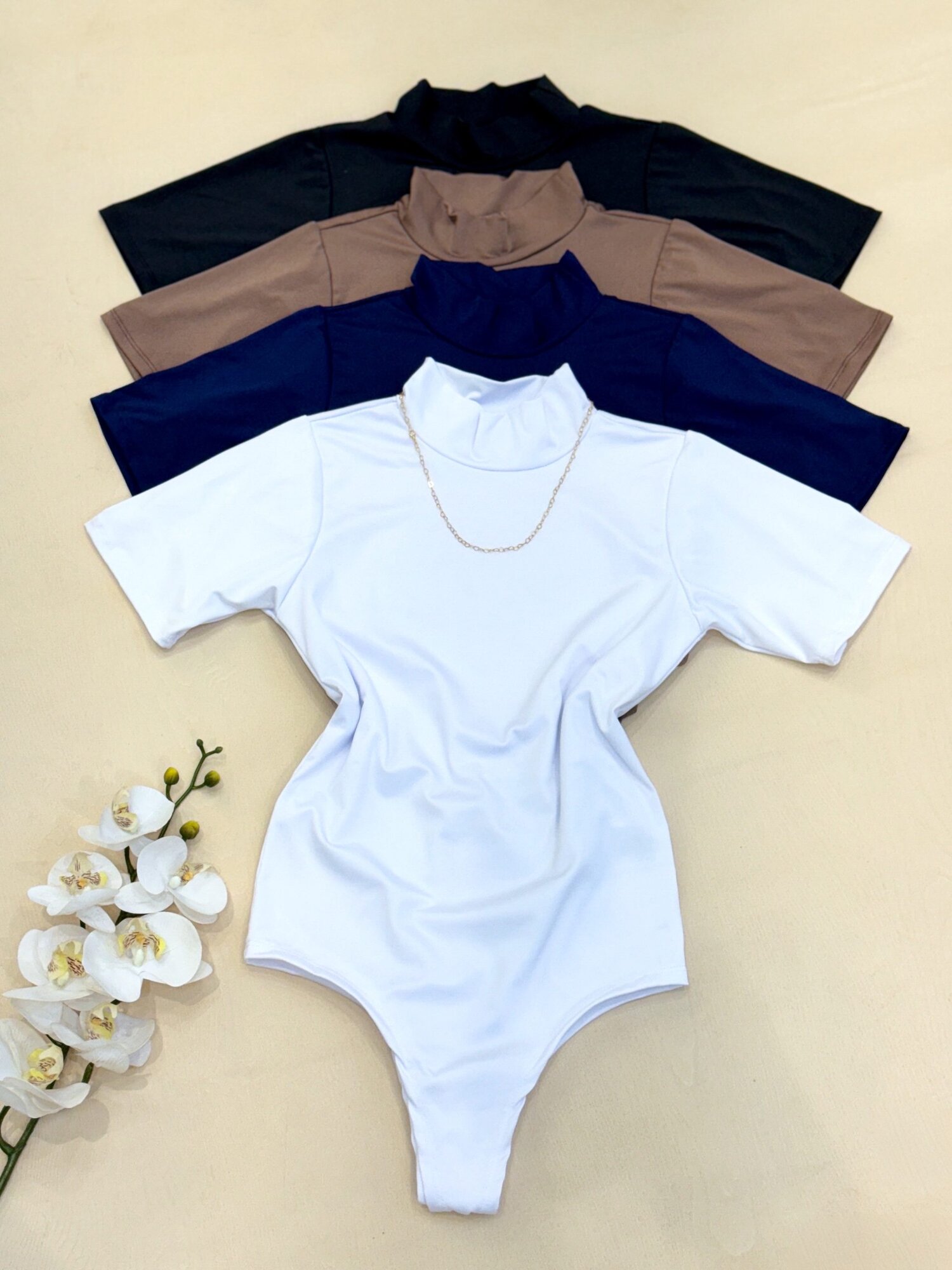 Body confeccionado no tecido Suplex, com mangas e gola alta, é um modelo social e elegante. (Possui fecho na parte inferior)