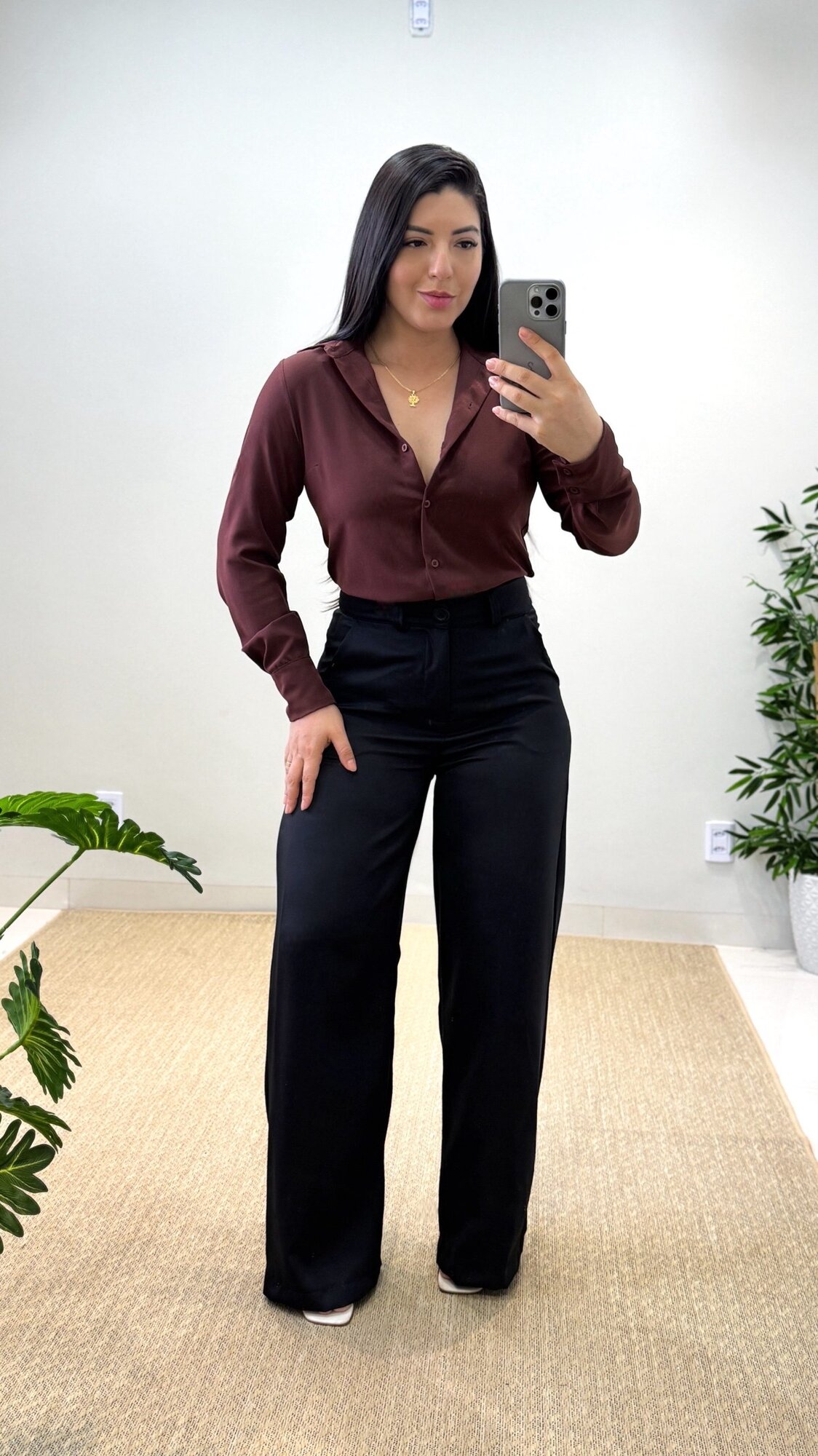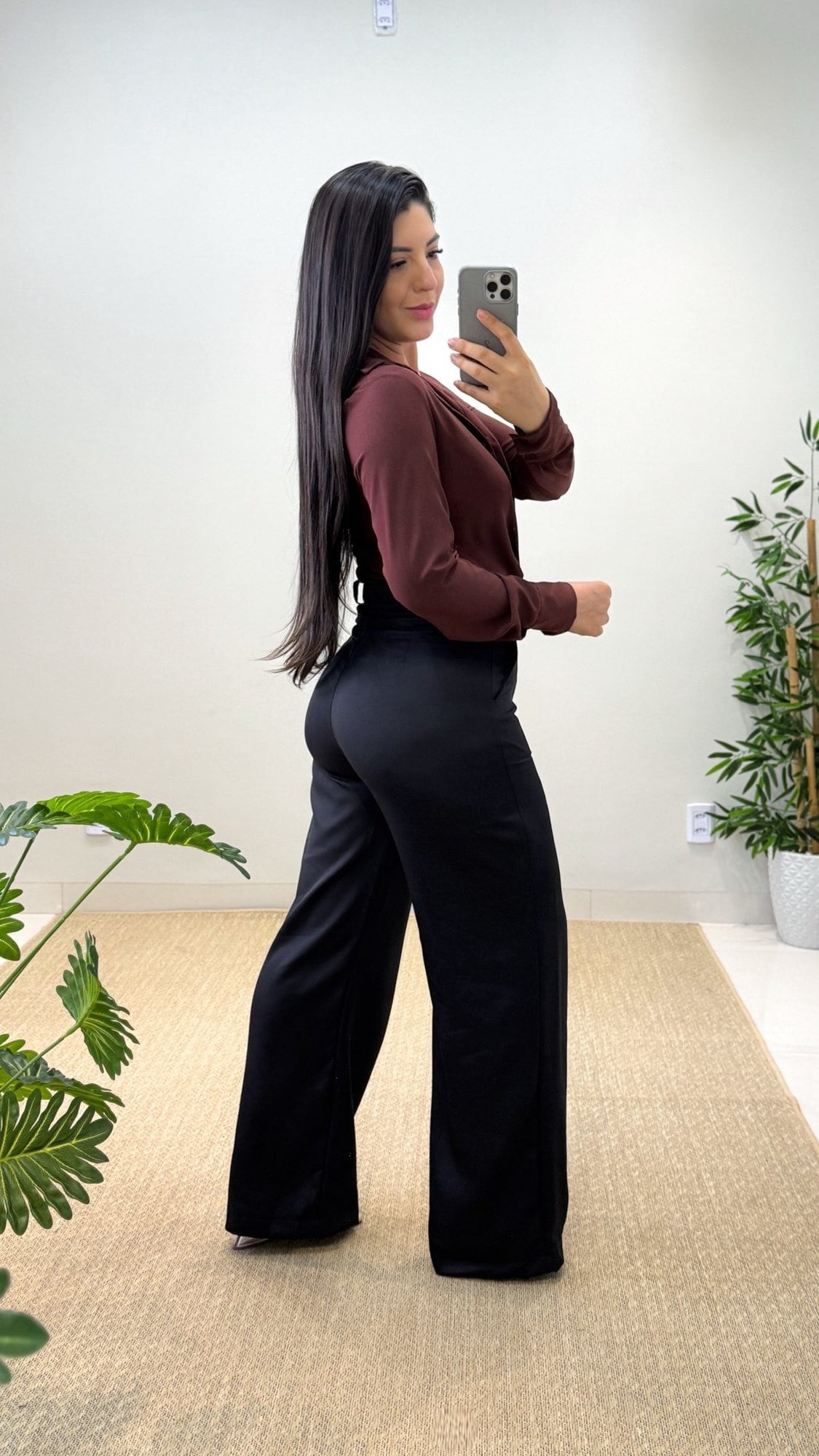 A Calça Pantalona veio para ficar e pode ser usada em diversas ocasiões! A modelagem no alfaiataria é um pouco mais larga no corpo, podendo transitar entre looks mais despojados ou elegantes.