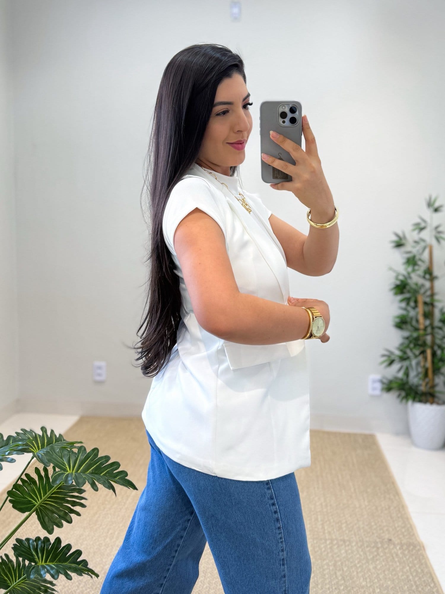 Colete confeccionado no crepe de alfaiataria, para você que busca estilo e modernidade para composição de looks.