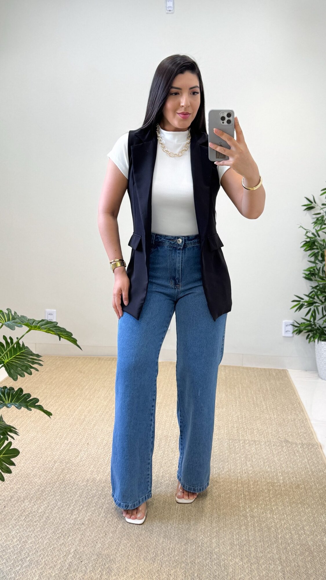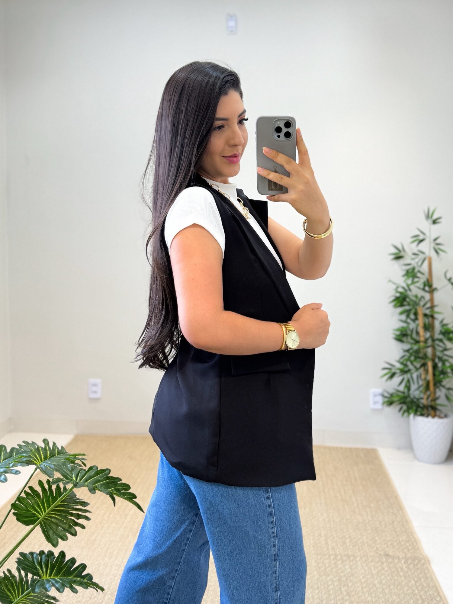 Colete confeccionado no crepe de alfaiataria, para você que busca estilo e modernidade para composição de looks.