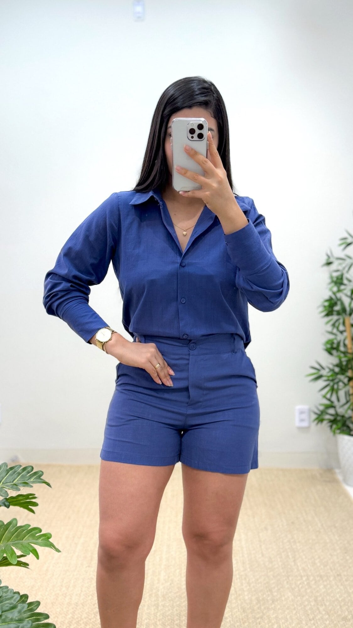 Conjunto social de short e camisa, é um modelo elegante e versátil que possibilita compor looks separadamente e arrasar em diversas ocasiões. (O short possui elástico na parte detrás do cós)