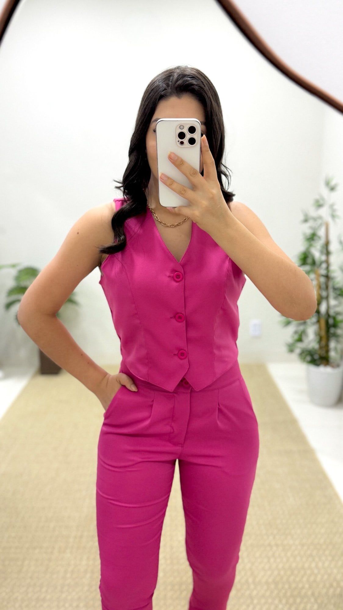 Descubra o poder da elegância com o Conjunto confeccionado em crepe alfaiataria: um equilíbrio perfeito entre estilo e sofisticação. O colete com botões adiciona um toque de modernidade, enquanto a calça proporciona conforto e um caimento impecável. Vista-se com confiança e destaque-se em qualquer ocasião com esse conjunto que é puro charme e classe.