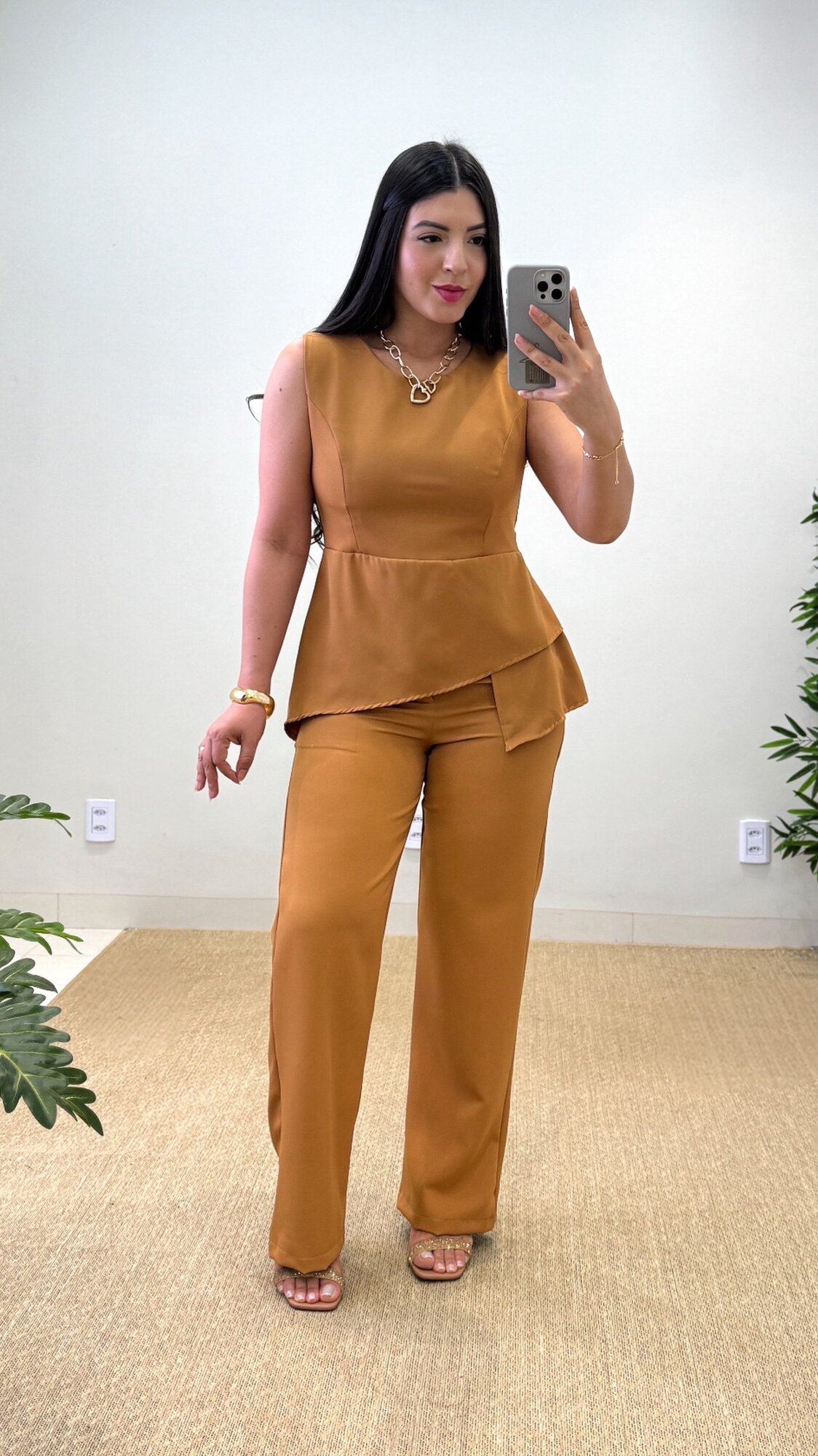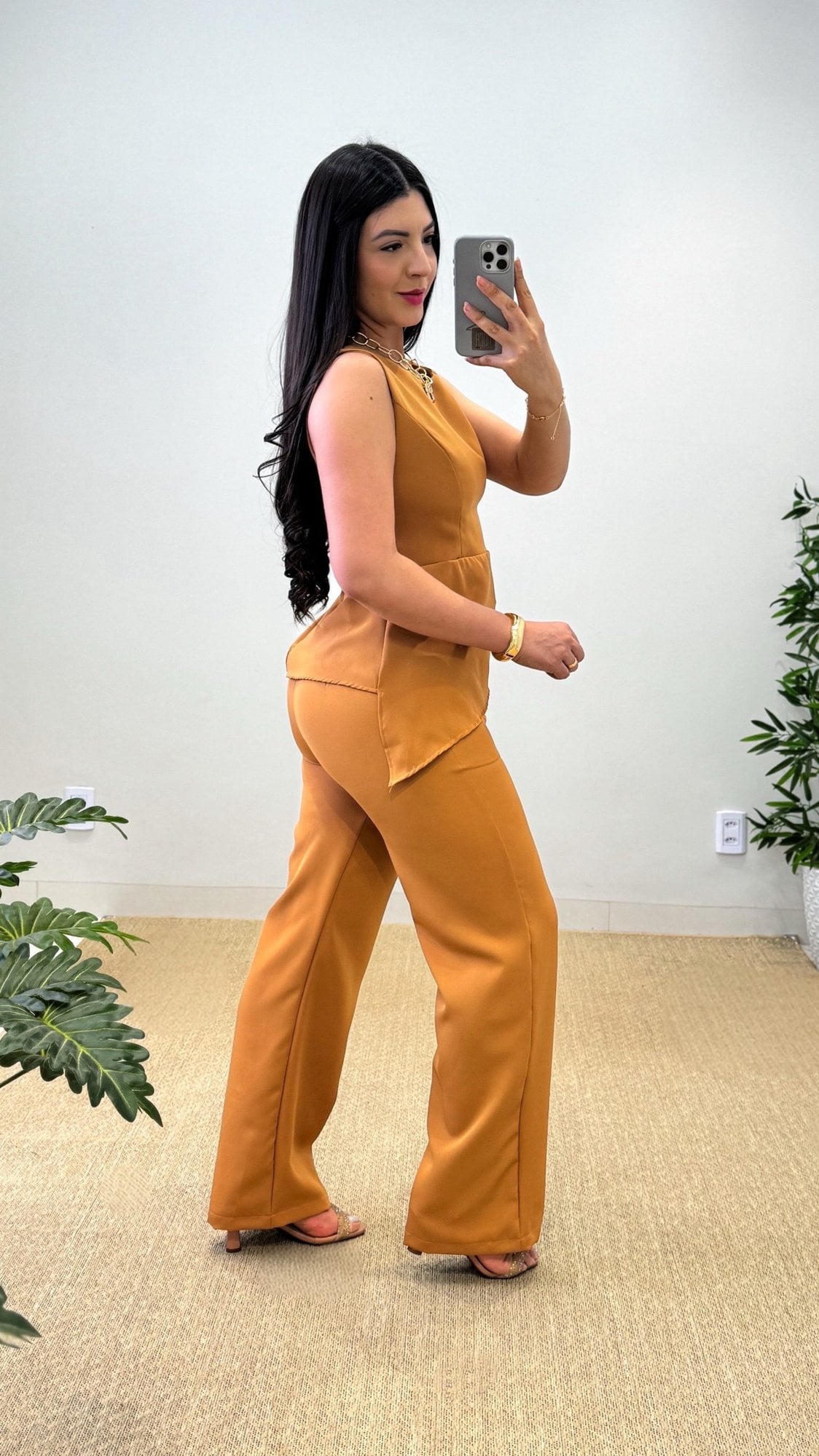 O melhor conjunto para quem busca um look elegante e atual, já que a calça tende a apresentar a cintura mais alta, promovendo conforto na hora de usar. Confeccionado em Crepe Alfaiataria Importada, esse conjunto traz um tecido de alta qualidade e seu caimento é impecável.