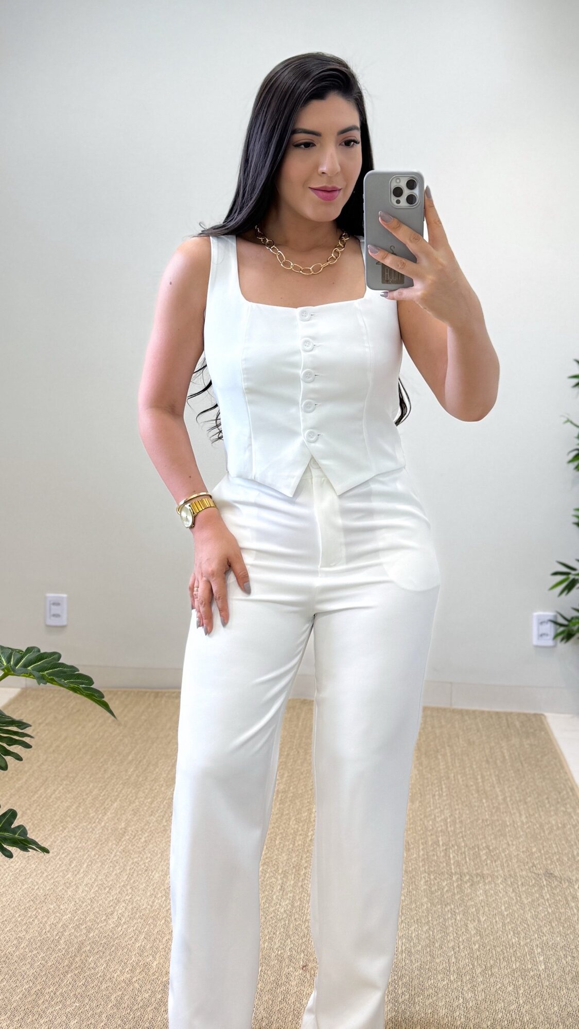 Conjunto social confeccionado no Crepe de Alfaiataria Importada. É uma opção versátil, elegante e que proporciona conforto para usar em diversas ocasiões.