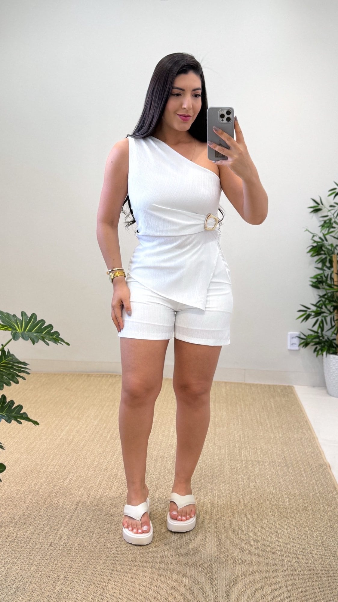 O conjunto Sthefy é uma proposta elegante e cheia de estilo, formado por short tradicional e blusa nula manga rica em detalhes. Não possui bojo; short forrado.