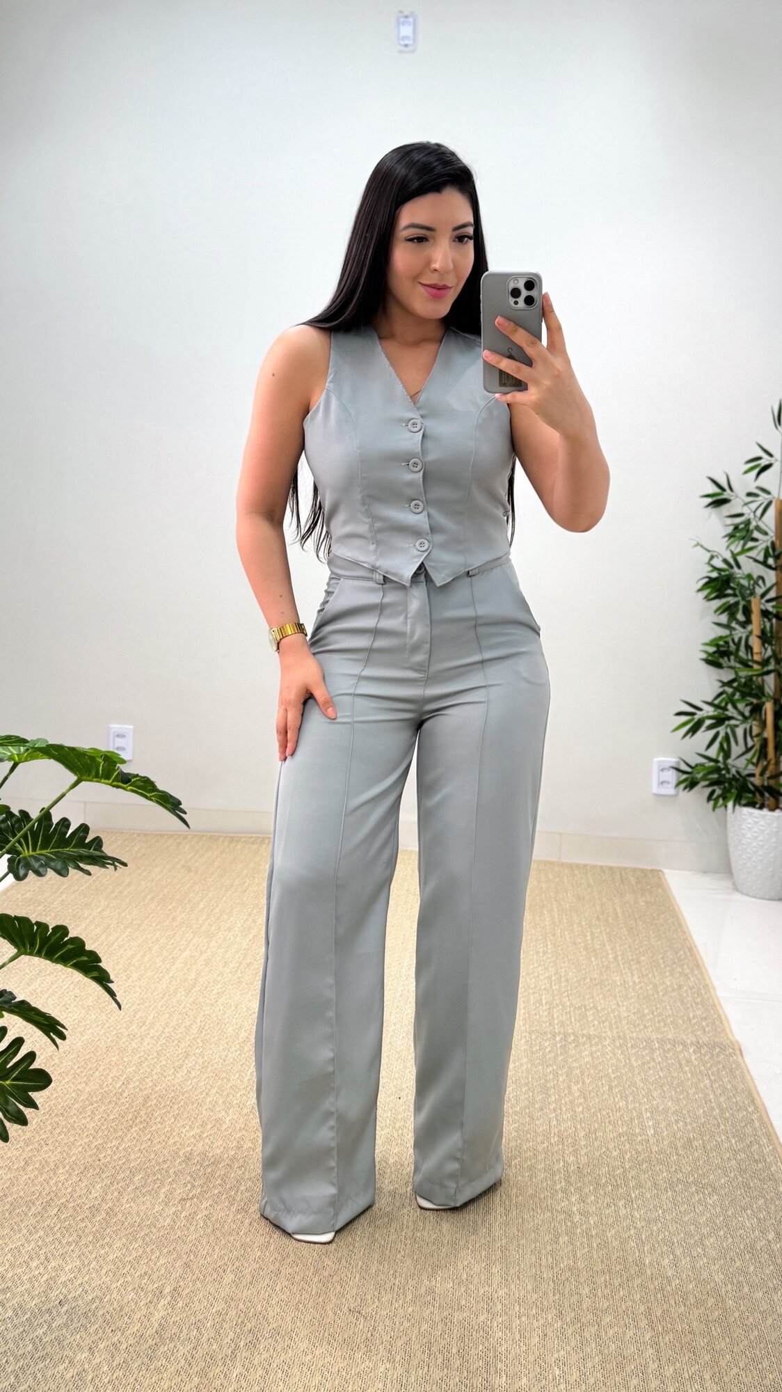 O melhor conjunto para quem busca um look elegante e atual, já que a calça tende a apresentar a cintura mais alta e promovendo conforto na hora de usar. Confeccionado em Crepe Alfaiataria, esse conjunto traz um tecido de alta qualidade e seu caimento é impecável.