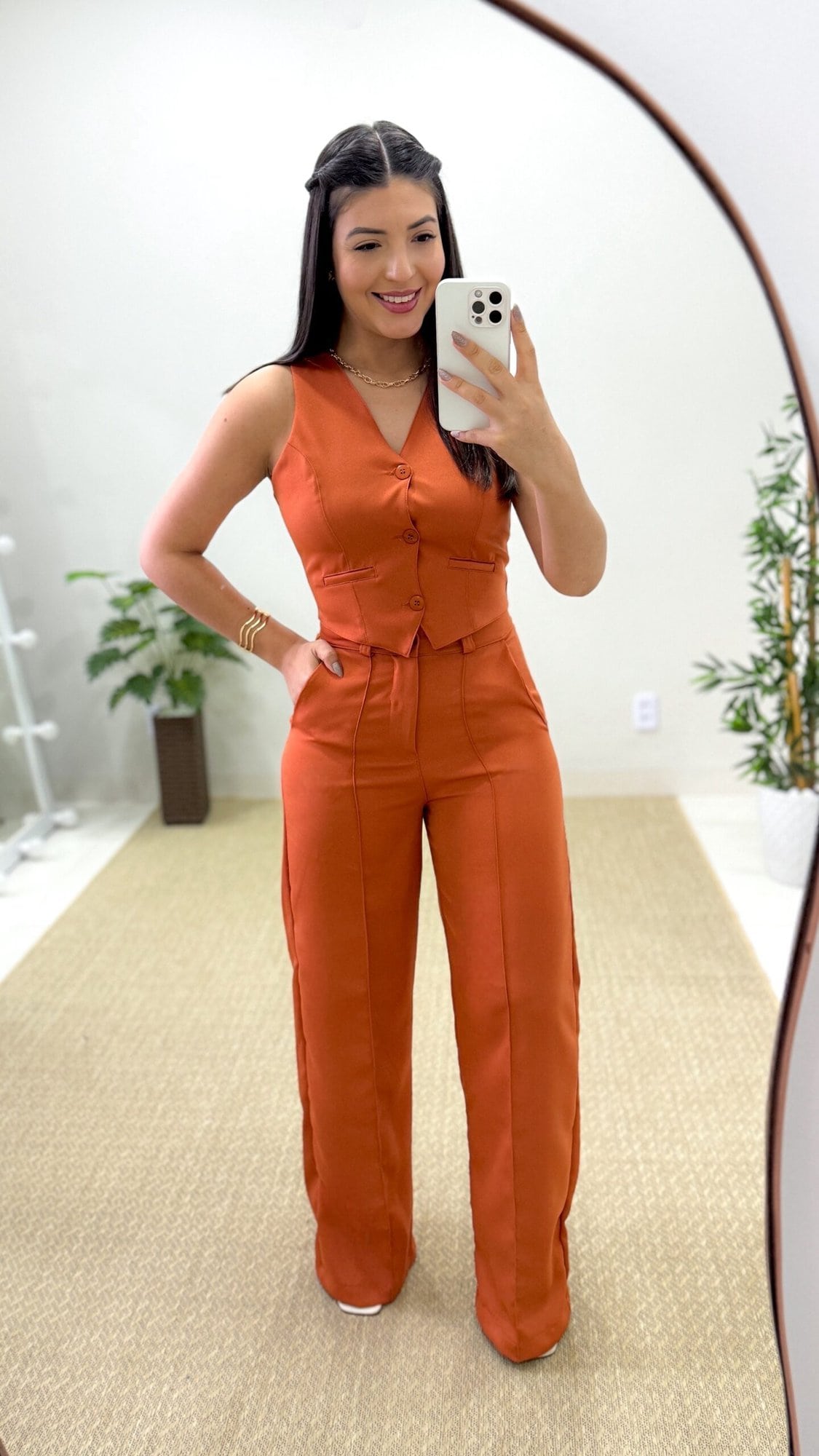 O melhor conjunto para quem busca um look elegante e atual, já que a calça tende a apresentar a cintura mais alta e promovendo conforto na hora de usar. Confeccionado em Crepe Alfaiataria, esse conjunto traz um tecido de alta qualidade e seu caimento é impecável.