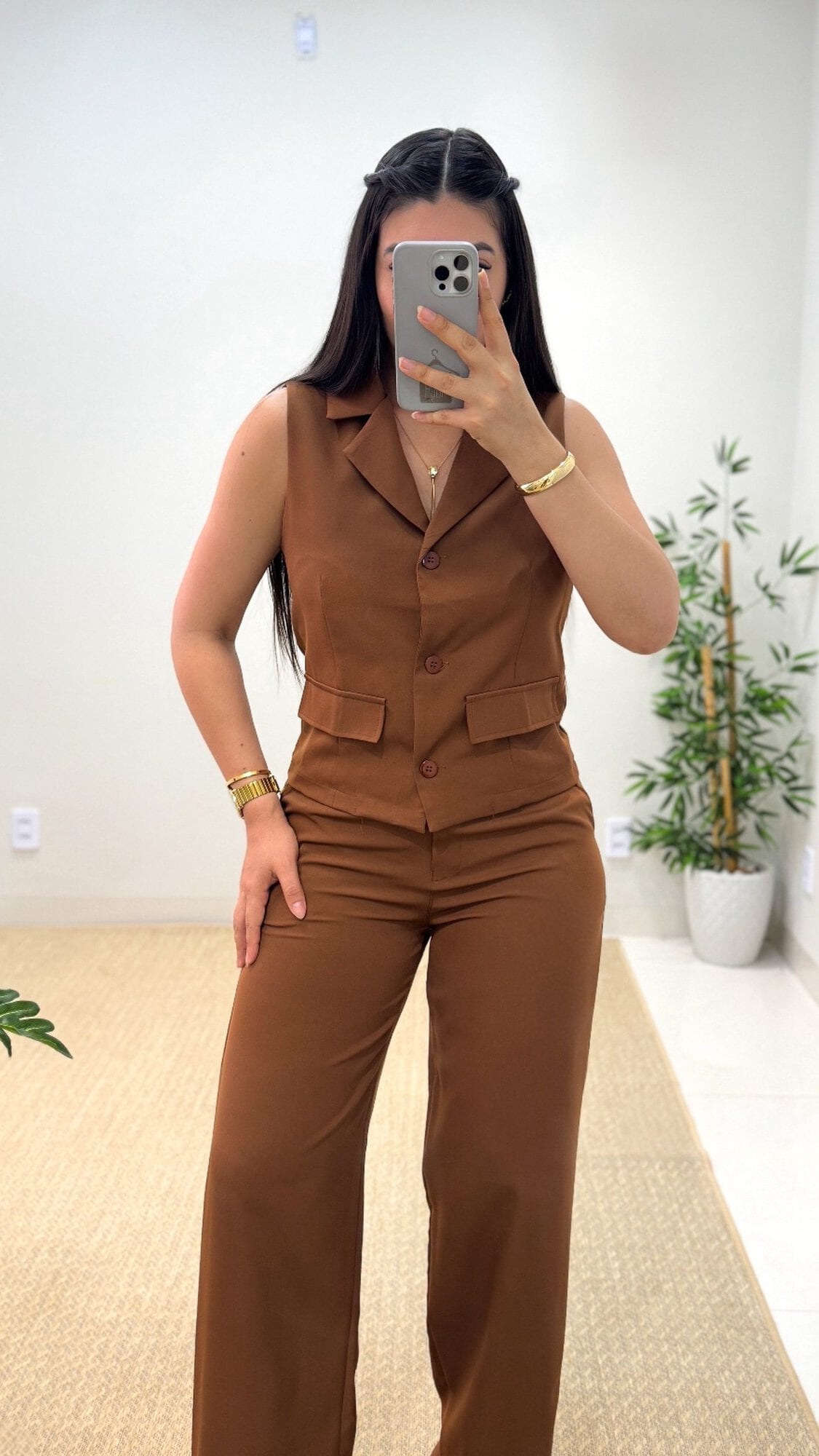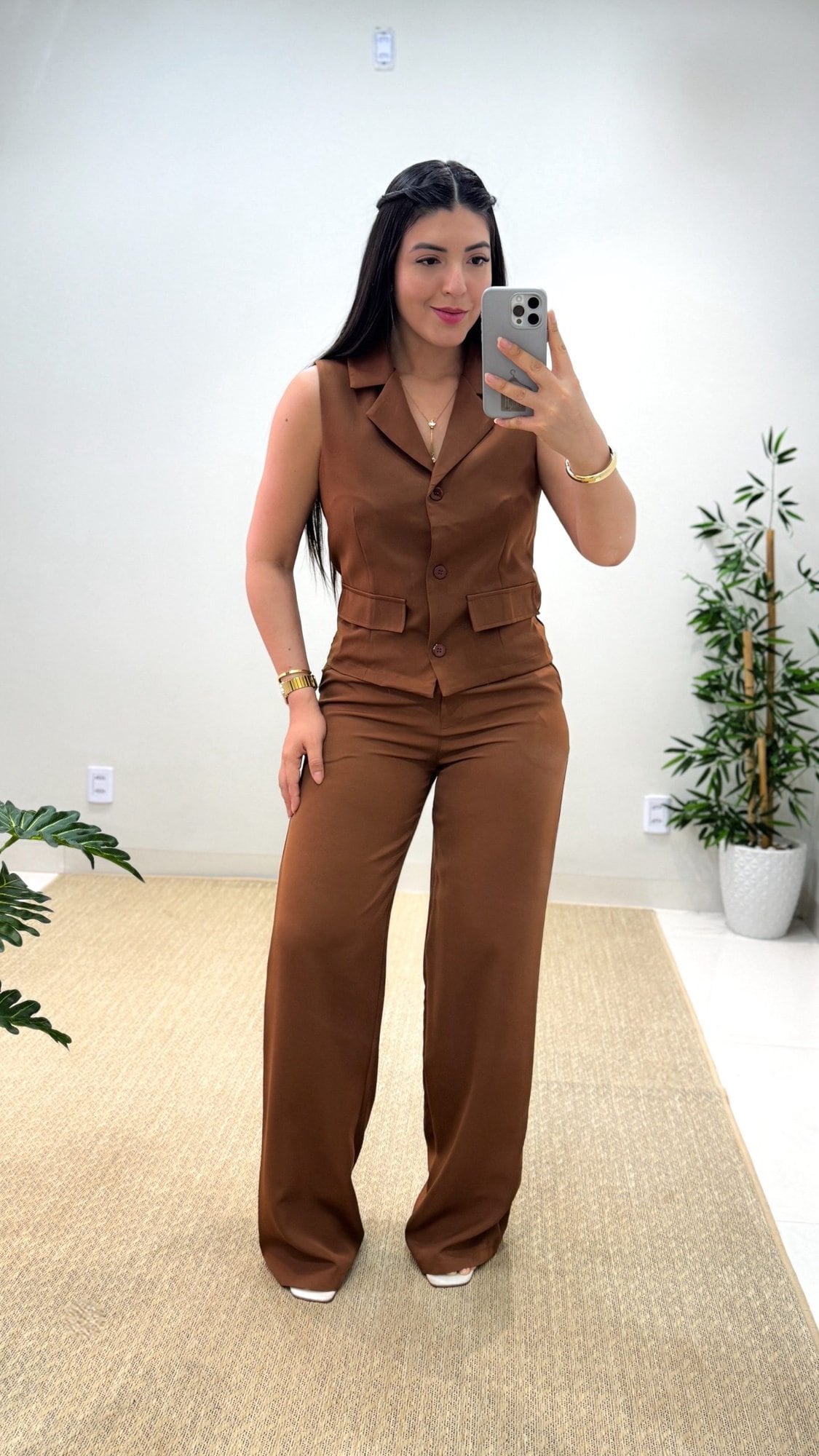 O melhor conjunto para quem busca um look elegante e atual, já que a calça tende a apresentar a cintura mais alta, promovendo conforto na hora de usar. Confeccionado em Crepe Alfaiataria Importada, esse conjunto traz um tecido de alta qualidade e seu caimento é impecável.