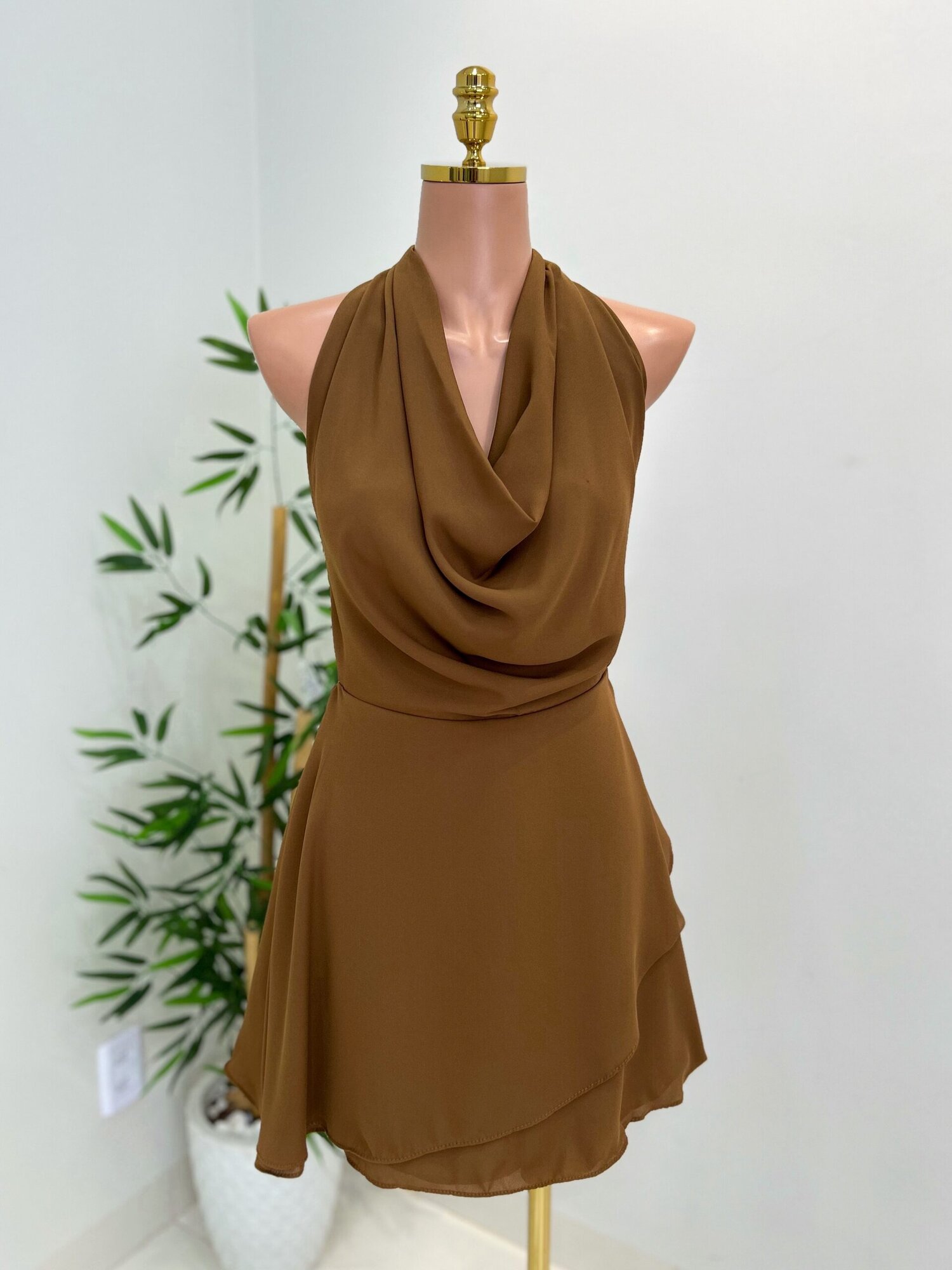 Nosso vestido curto com decote cowl neck traz o drapeado delicado que valoriza o colo e deixa o look moderno e sofisticado na medida certa. Modelagem que veste super bem e realça a silhueta com conforto.