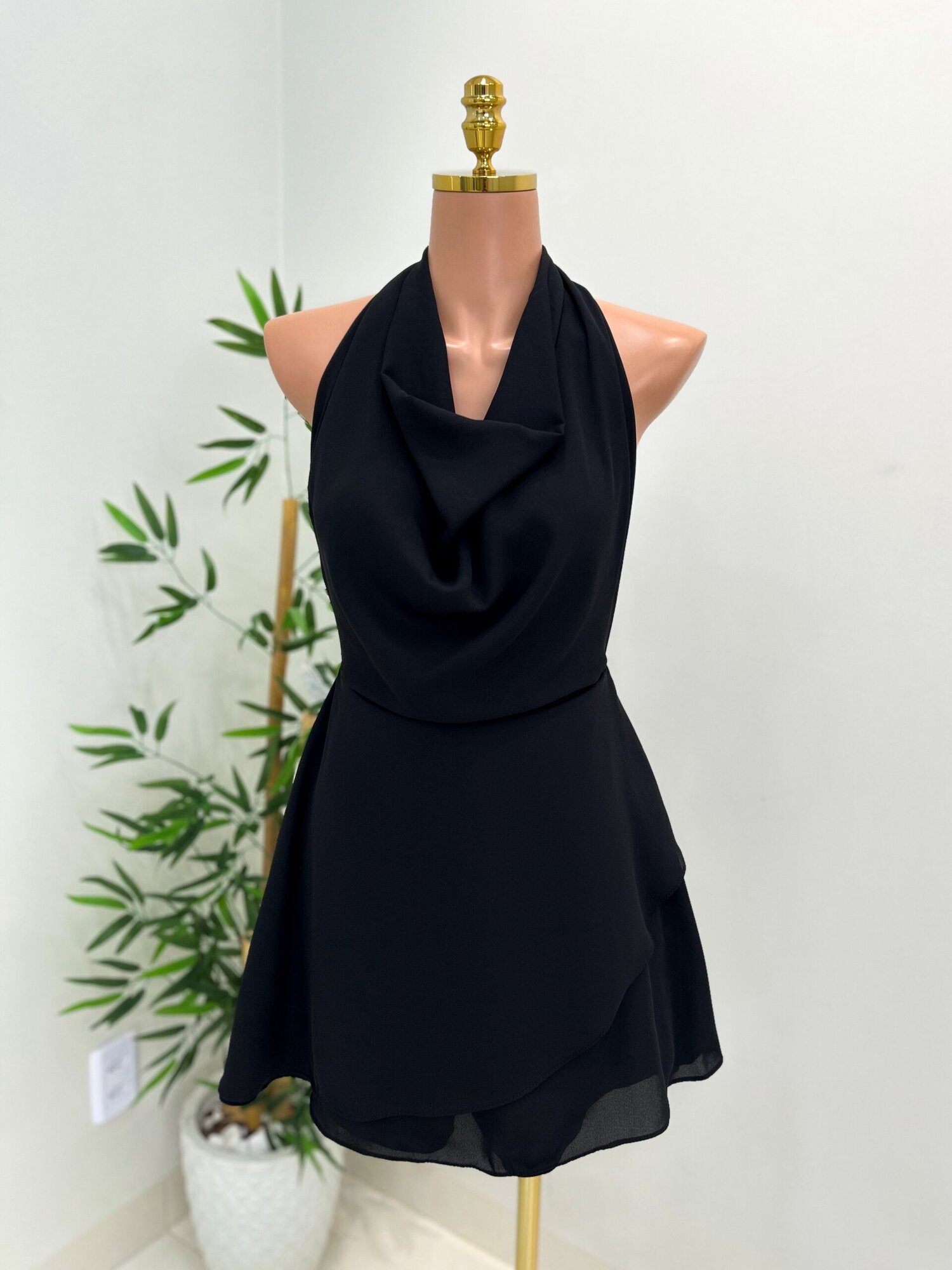 Nosso vestido curto com decote cowl neck traz o drapeado delicado que valoriza o colo e deixa o look moderno e sofisticado na medida certa. Modelagem que veste super bem e realça a silhueta com conforto.