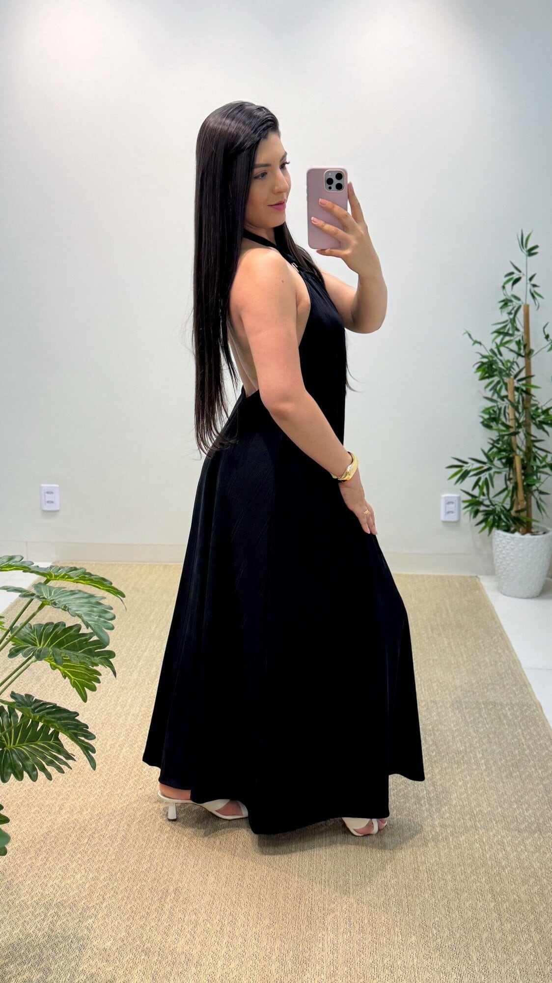Deixe-se envolver pela elegância atemporal deste deslumbrante vestido texturizado e encorpado, garantindo sua elegância em cada ambiente.