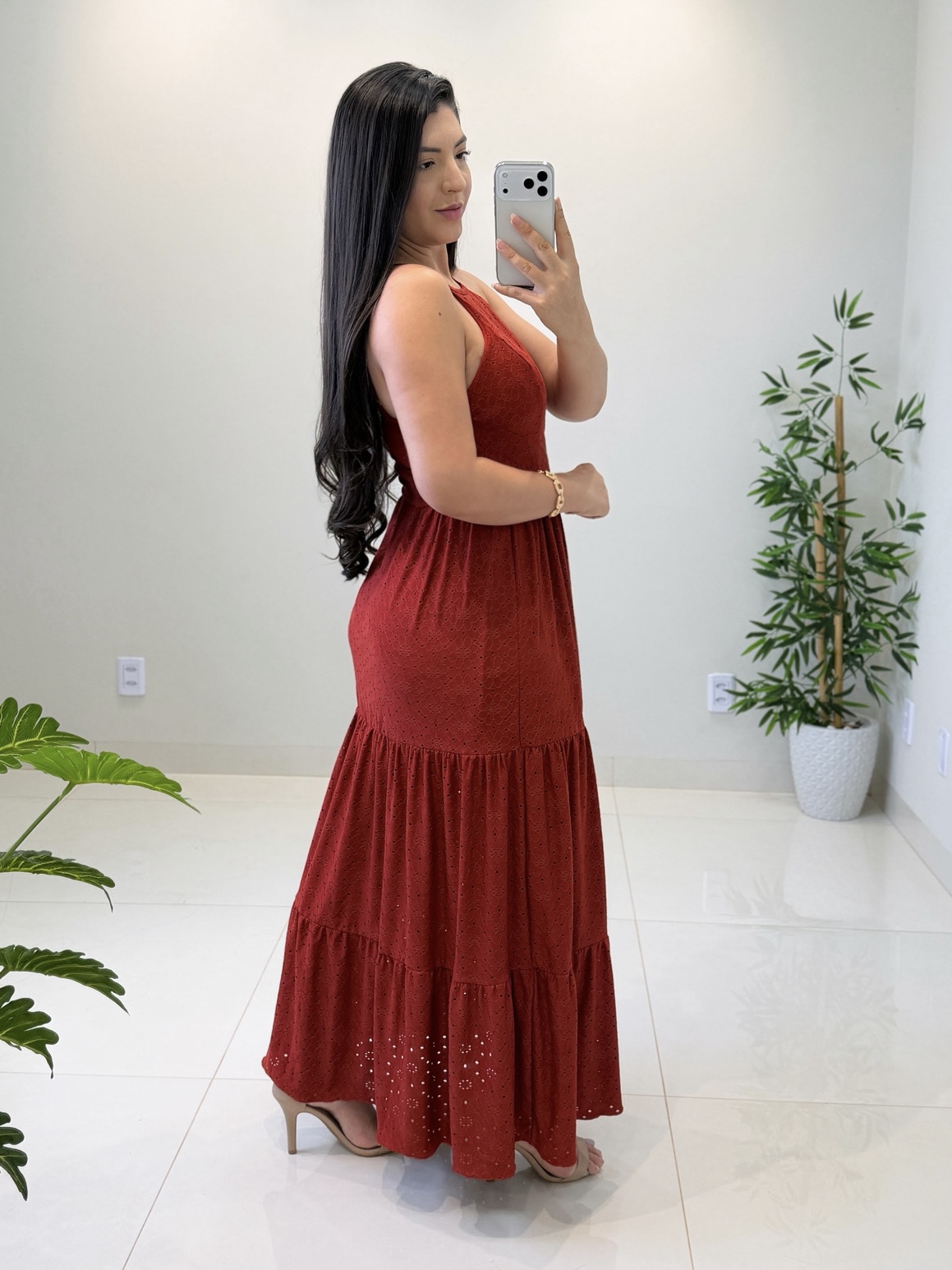Com modelagem longa e fluida, ele traz leveza e movimento a cada passo. Possui lastex nas costas, bojo e forro também. O tecido estica e é maleável trazendo um ótimo caimento ao corpo.
