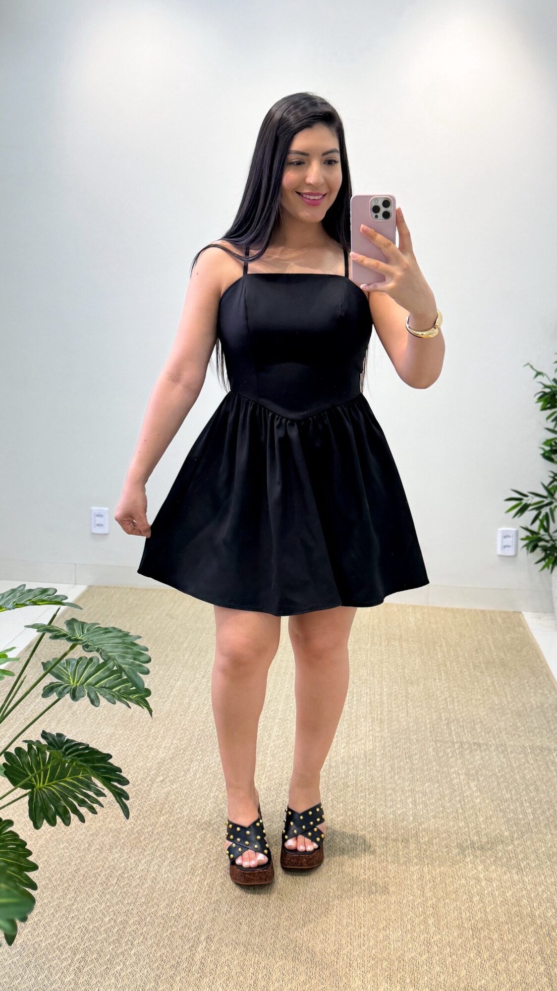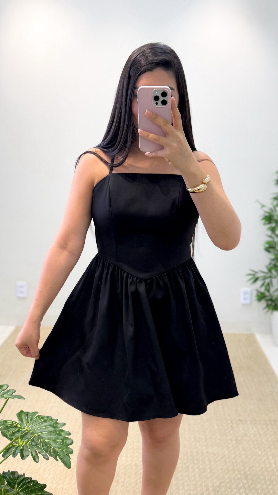 Vestido confeccionado em crepe de alfaiataria, com modelagem soltinha e amarrações ajustáveis, proporcionando um caimento elegante e confortável. (Não possui bojo)